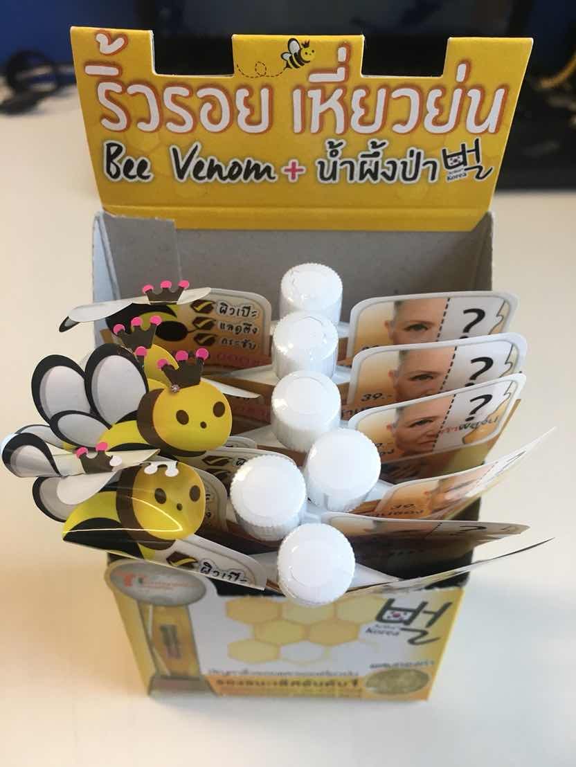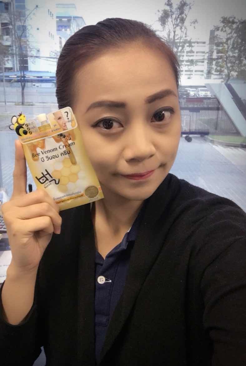 เค้าบอกว่า เป็นครีมที่ได้รับรางวัลนวัตกรรมดีเด่นจาก 11 องค์กรเพียงเจ้าเดียว เป็นครีมพิษผึ้ง ทำมาจากส่วนผสมเหล็กในผึ้ง เป็นการคิดค้นนวัตกรรมเลียนแบบการทำงานของร่างกายเวลาถูกผึ้งต่อย ผิวจะบวมตึง เรานำจุดนั้นมาใช้ประโยชน์ แต่จำกัดในปริมาณที่พอเหมาะ ผ่านการทดสอบทางวิทยาศาสตร์ ได้ใบรับรองจากเกาหลี ในด้านความปลอดภัยที่เห็นผลเร็ว