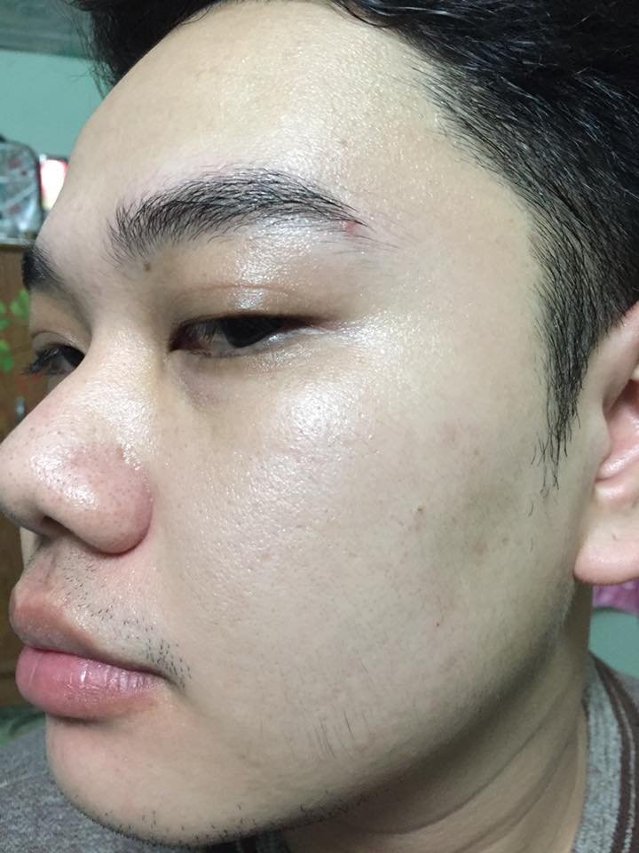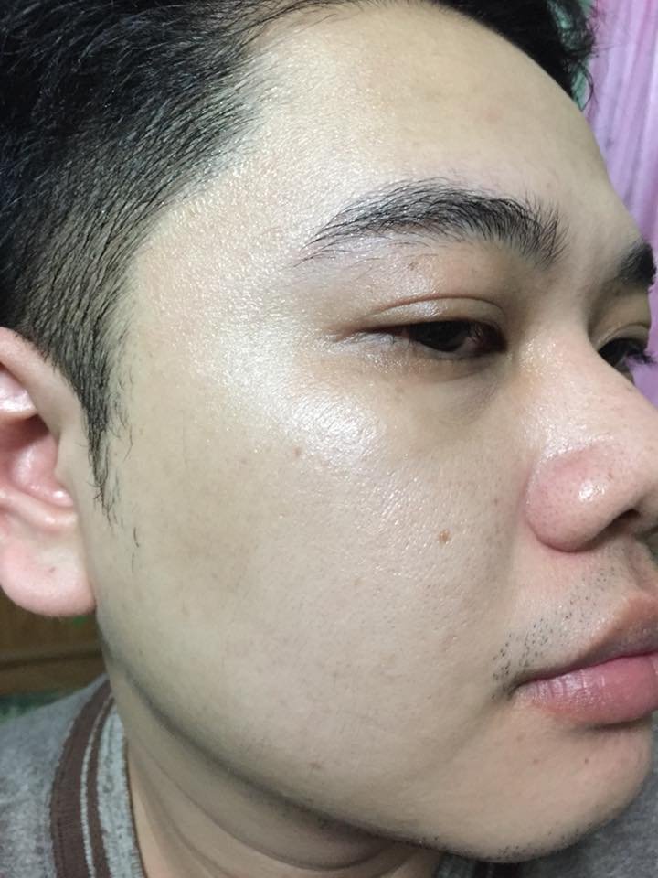 ทั่วหน้าคือ หน้าผาก จมูก แก้ม คาง จากนั้นเกลี่ยให้ทั่วใบหน้า