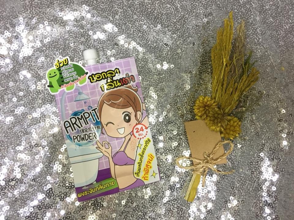 ผงทาใต้วงแขนซองม่วงบอกลากลิ่นเต่าไปได้เลยเนื้อแป้งขาวละเอียดมีกลิ่นหอมอ่อนๆ มีสารสกัดจากลูกพลับญี่ปุ่นที่เขาว่าช่วยต้านแบคทีเรีย ดับกลิ่น ใต้วงแขน แถมช่วยให้ผิวเรียบเนียน
