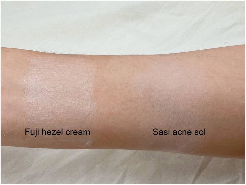 มาเริ่มกันที่เนื้อของผลิตภัฑณ์ทั้ง 2 นะคะ เฮเซลครีมของฟูจิมีเนื้อครีมที่เนียนนุ่มกลิ่นหอมเฉพาะตัวเหมือนครีมภูเขาสมัยก่อนที่เราเคยใช้ ทาแล้วผิวจะโกลวๆขึ้น ทางแป้งคุมมันศศิก็จะให้ผิวที่แมทเนียนเพื่อช่วยควบคุมความมัน