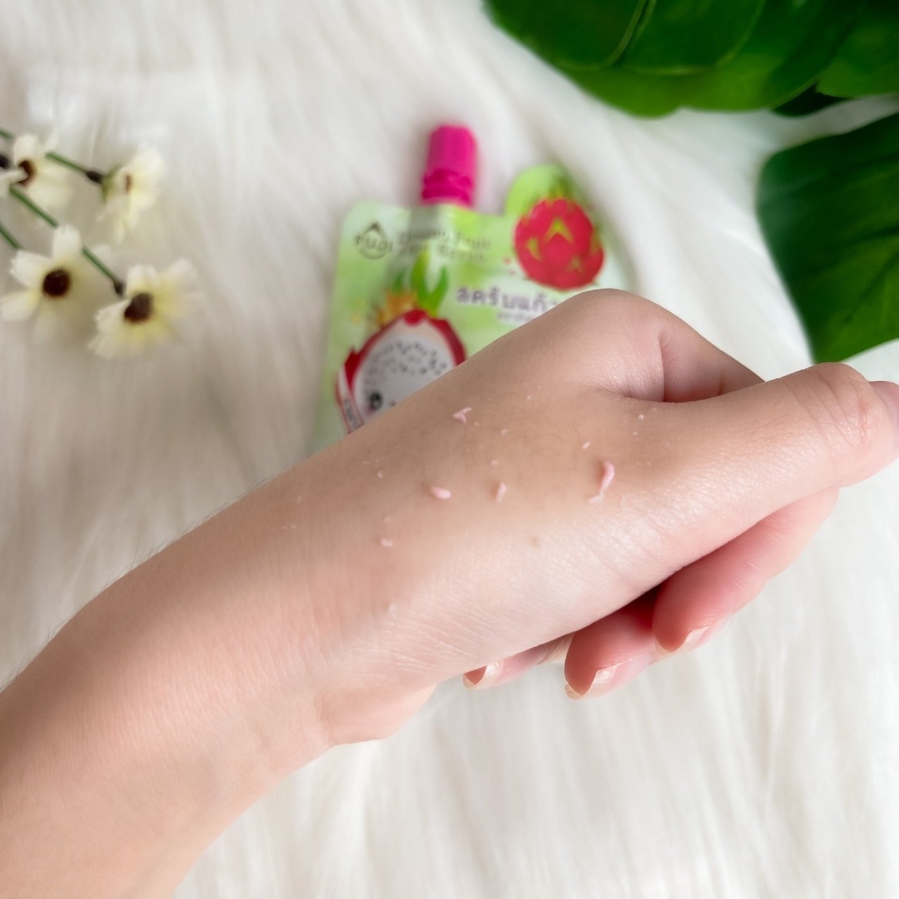 สครับขัดผิว สารสกัดจากแก้วมังกร ผสมอโลเวร่าและเมือกหอยทาก ใช้ขัดผิวหน้าหรือผิวกาย เพื่อผลัดเซลล์ผิว ชำระล้างคราบสิ่งสปรกฝังลึก ให้ผิวขาวกระจ่างใส ไม่หมองคล้ำ สามารถใช้ได้หลากหลายจุดบนร่างกาย เช่น ใบหน้า ซอกคอ ข้อพับ ขาหนีบ ไม่ทำให้ผิวแห้งขาดน้ำทำให้เกิดการเสียดสีที่เป็นสาเหตุของการคล้ำเสีย เพราะตัวสครับแก้วมัง ให้ความชุ่มชื่นและบำรุงไปในตัว