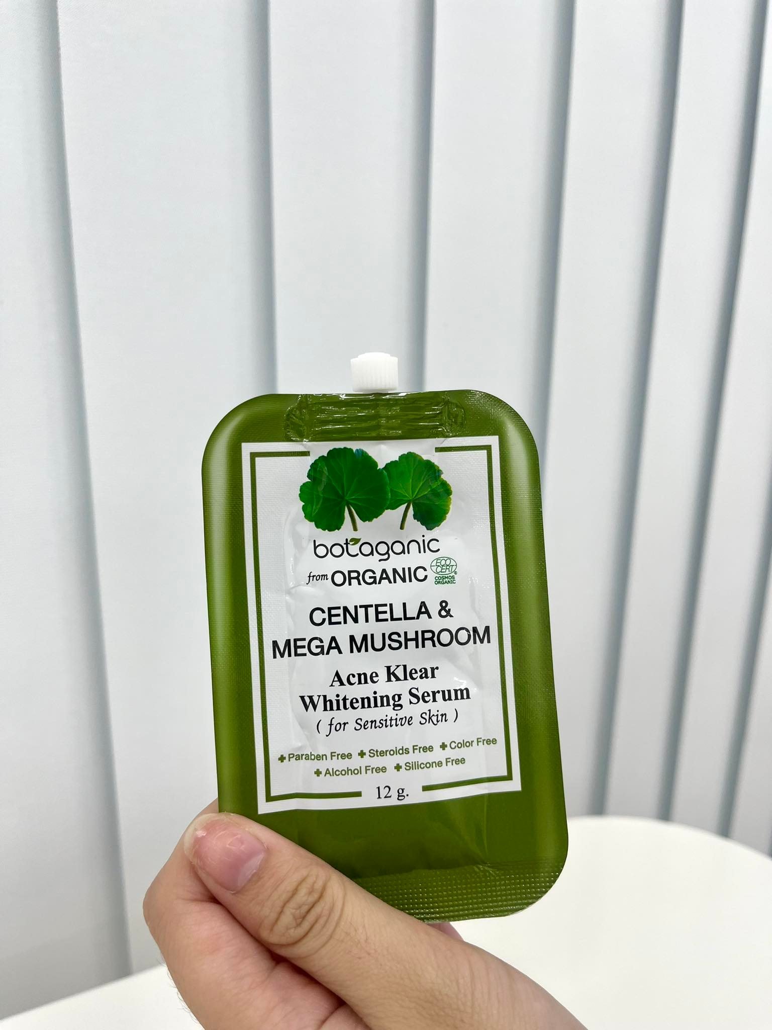 "BOTAGANIC CENTELLA & MEGA MUSHROOM ACNE KLEAR WHITENING SERUM" ขอเรียกสั้นๆาน้ำตบโบทา ซึ่งเขาเป็นน้ำตบเห็ดจ้าาา ส่วนผสมหลักๆก็คือ เห็ดหลินจือ ใบบัวบก ไนอะซินาไมด์ ว่านหาง และน้ำมันมะกอก ที่สำคัญไม่มีน้ำหอม ไม่มีพาราเบน ไม่มีซิลิโคน ไม่มีแอลกอฮอลจ้า อ่อนโยนสุดๆ เราเลยกล้าลองใช้ค่ะเพราะส่วนตัวผิวแพ้ง่ายมาก