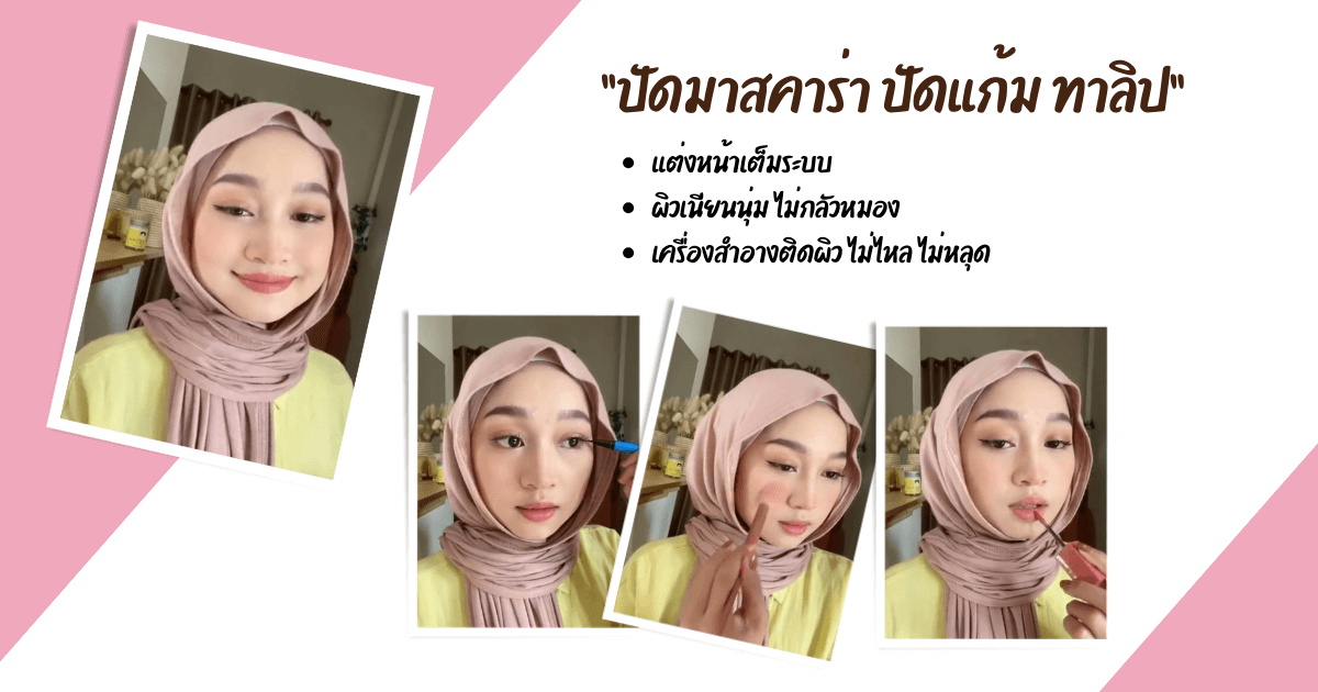 จากนั้นลงไฮไลท์ เฉดดิ้ง อายแชโดว์ และเขียนคิ้ว สกินแคร์ที่ดี จะทำให้ผิวชุ่มชื้น หน้าอิ่มฟู แต่งหน้าติด ไม่เมือก ไม่เยิ้ม นะคะ