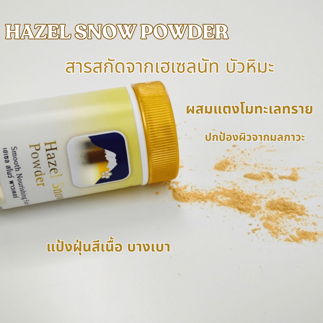 แป้งฝุ่นภูเขา Hazel Snow ไปสอยมาในแอพส้ม ราคาน่ารัก 59 บาท จร้า เคยใช้แต่ครีมเฮเซลสโนว์ ตอนนี้พี่แกเค้าออกแป้งมาใหม่ เห็นมี 2 สูตร ก็เลยกดสั่งมาดู เนื้อเค้าบางเบามากแก ตอนทาแป้งกลืนผิวกริบ! คุมมันได้อยู่ เค้ามีส่วนผสมของ เฮเซลนัท บัวหิมะ ช่วยกระตุ้นคอลลาเจน ลดการอักเสบของผิว และ Niacinamide ช่วยเรื่องริ้วรอย ปลื้มมาก เอาให้ยายดม ยายรู้เลย ว่าเนี่ยของครีมภูเขา ครีมในตำนาน กลิ่นเค้าเป็นเอกลักษณ์จริงๆ ตอนนี้โดนยายสอยไปแล้ว 1 กระปุก